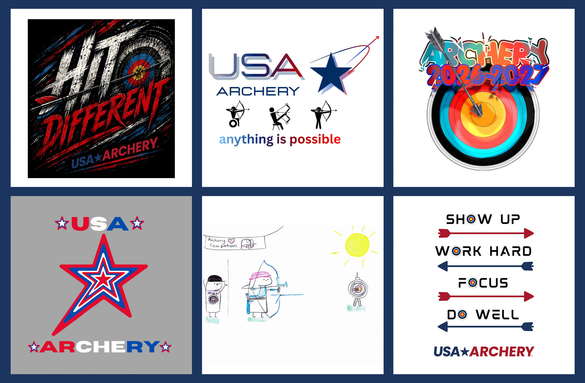 COLORADO SPRINGS, Colo. - After receiving so many great creative options, the USA Archery T-Shirt Design Contest has been reduced to the top six, and now goes to a public vote!